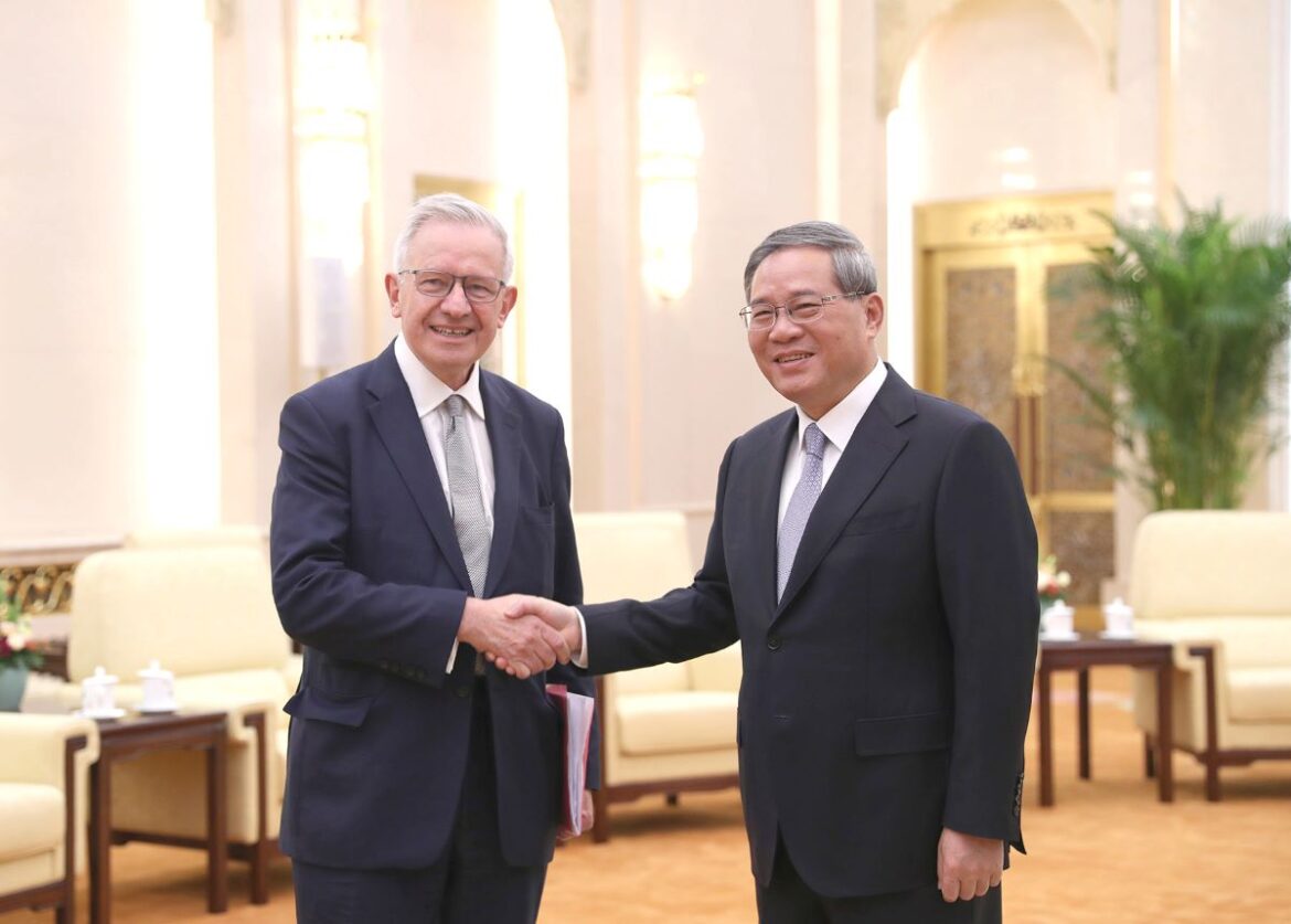 China-Britain Business Council (CBBC) Chair Sir Sherard Cowper-Coles, together with a delegation of 11 British companies, met with Premier Li Qiang at the Great Hall of the People in Beijing yesterday.