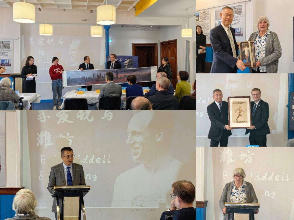 The exhibition “Eric Liddell & Weifang” was held in Edinburgh, UK, on August 22, 2024. The event took place at the Eric Liddell Community and was supported by several organizations, including the Consulate General of the People’s Republic of China in Edinburgh, the Office of the Foreign Affairs Committee of the CPC Shandong Provincial Committee, the Shandong Provincial Department of Culture and Tourism, the Weifang Government, the Weifang Department of Culture and Tourism, the Weifang Municipal Foreign Affairs Office, and the Scottish Confucius Institute for Business and Communication at Heriot-Watt University.